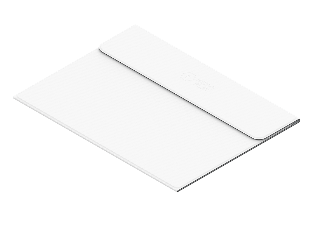 Uma abordagem revolucionária para playmats. Nada de enrolar ou usar tubos. Dobre-o de forma plana e guarde-o em um compartimento de notebook de 15". A experiência simples que você espera, com uma inovação em mobilidade que você não imaginava.