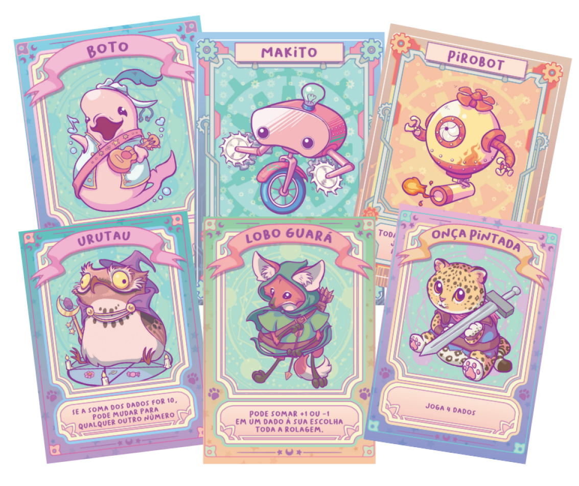 Conteúdo: 55 cartas, 5 dados e um manual,