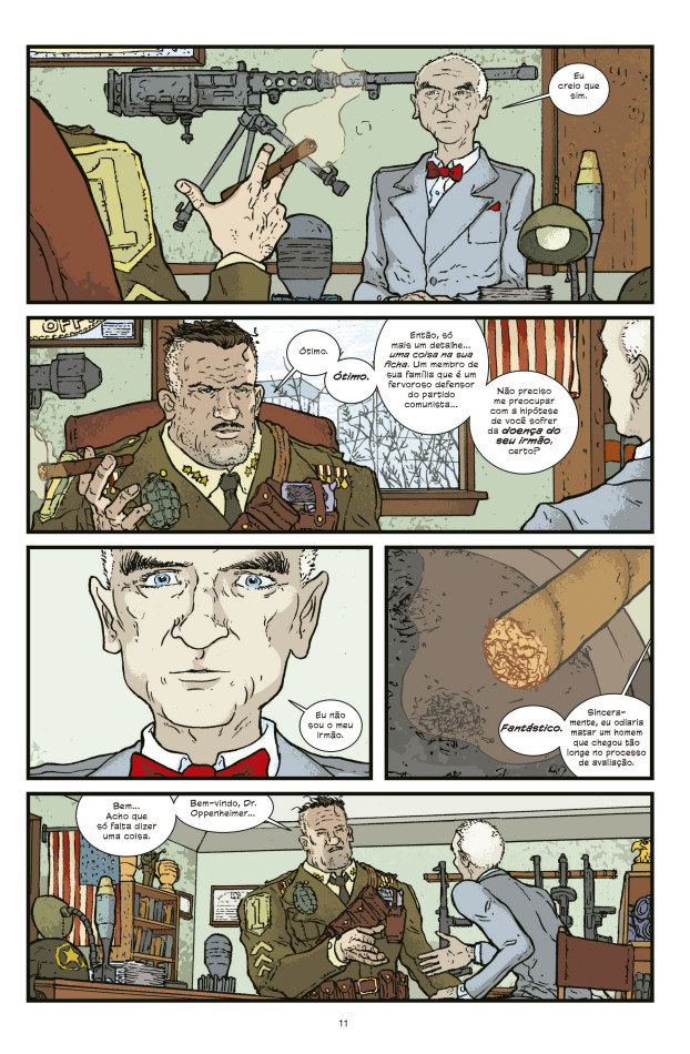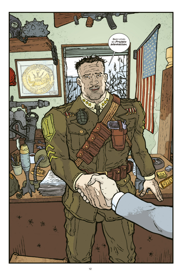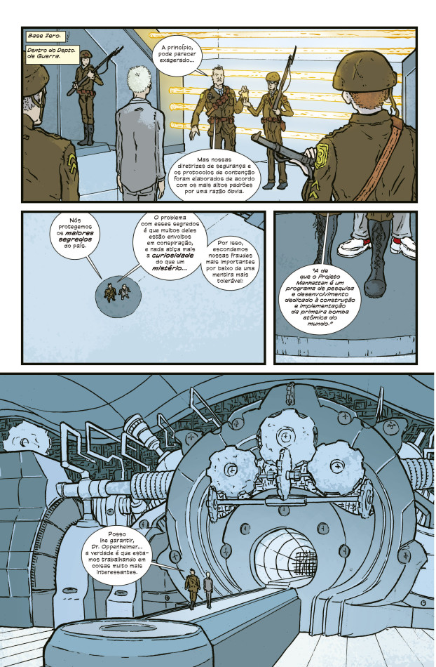E se tudo desse errado? Uma mistura explosiva de história e ficção científica, Projetos Manhattan revela segredos inimagináveis por trás da criação da bomba atômica. Gênios da ciência como Albert Einstein e figuras ilustres como o cosmonauta Yuri Gagarin se tornam protagonistas de conspirações interdimensionais, contatos alienígenas e escolhas que podem redefinir o destino da humanidade. Surreal e provocativa, a história de Jonathan Hickman ganha vida com o traço inconfundível de Nick Pitarra que reforça o tom excêntrico da obra.