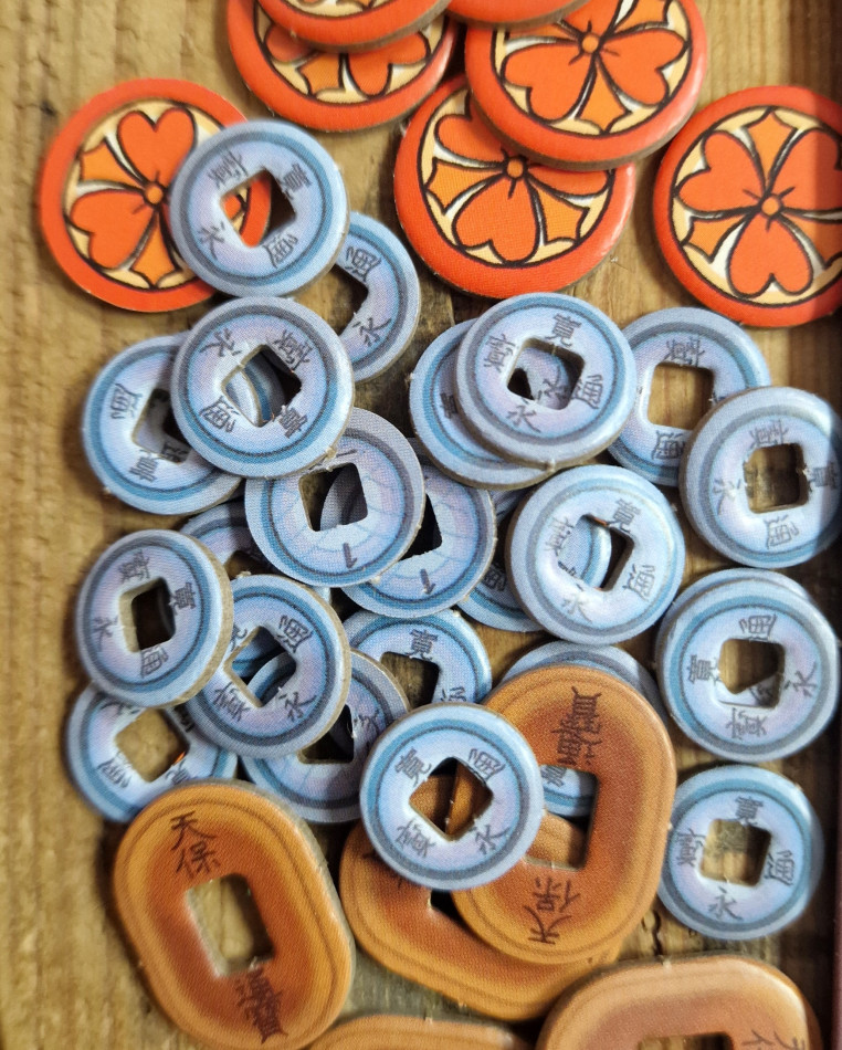 Conteúdo: 77 cartas, 82 peças, 5 tabuleiros, 85 fichas de madeira, 15 dados, e manuais.